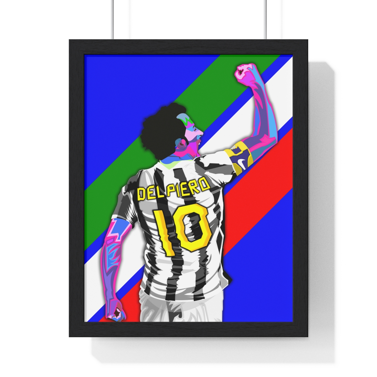 Celebrate the Juventus legend Alessandro Del Piero with our “Alessandro Del Piero: The Juventus Legend – Iconic Framed Artwork.” This piece honors Del Piero’s skill, leadership, and loyalty to the Bianconeri, showcasing his status as one of football’s most iconic figures.
