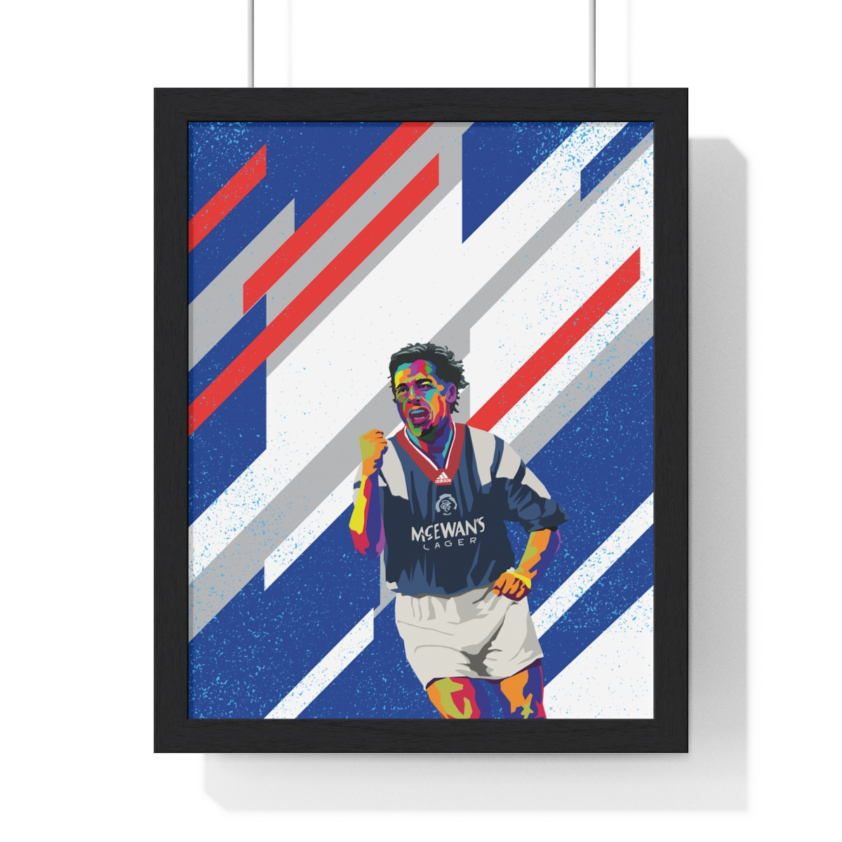 Pay tribute to the Scottish football icon Ally McCoist with our “Ally McCoist: The Scottish Goal-Scoring Sensation – Iconic Framed Artwork.” This piece celebrates McCoist’s goal-scoring instincts, dedication, and achievements, showcasing his enduring legacy in Scottish football.