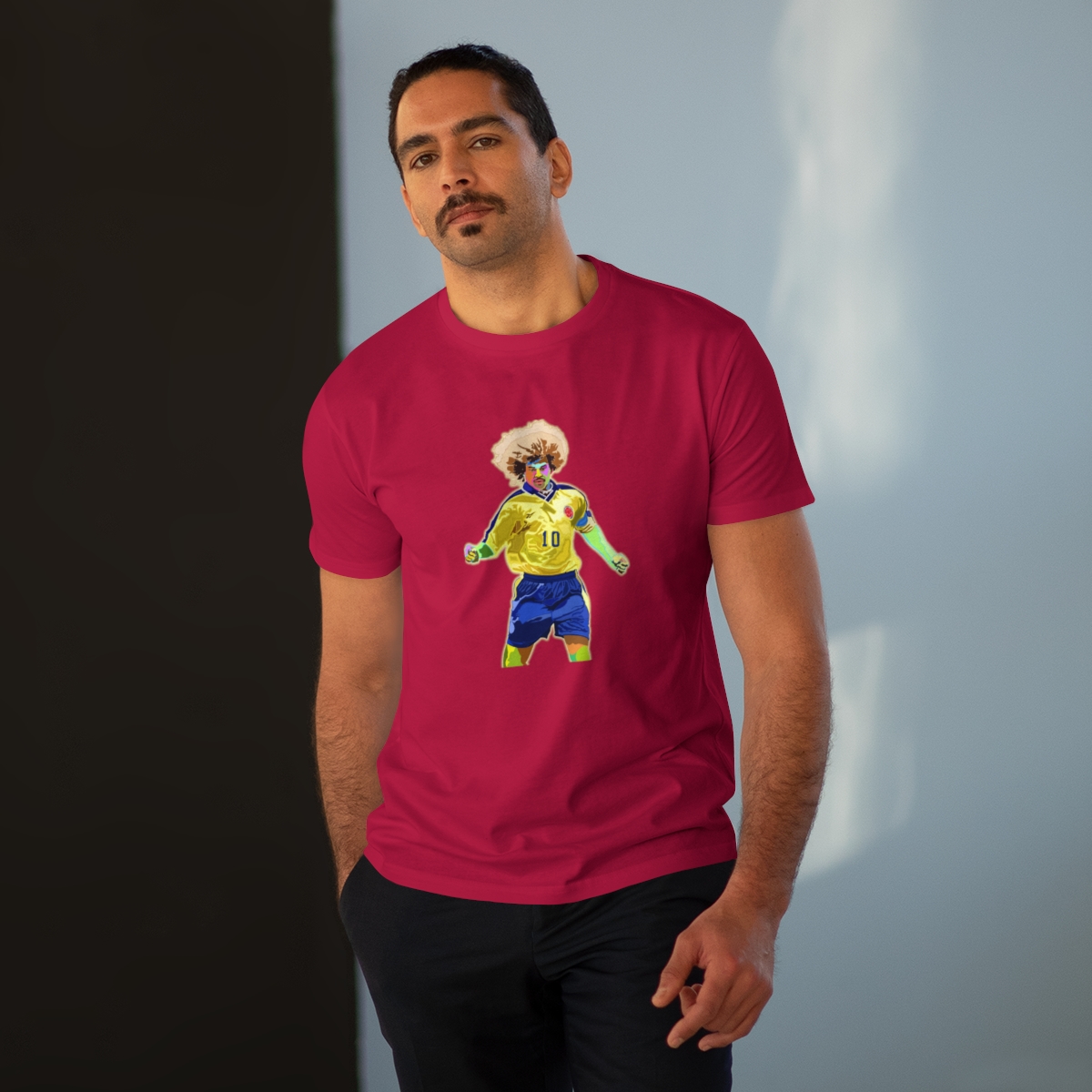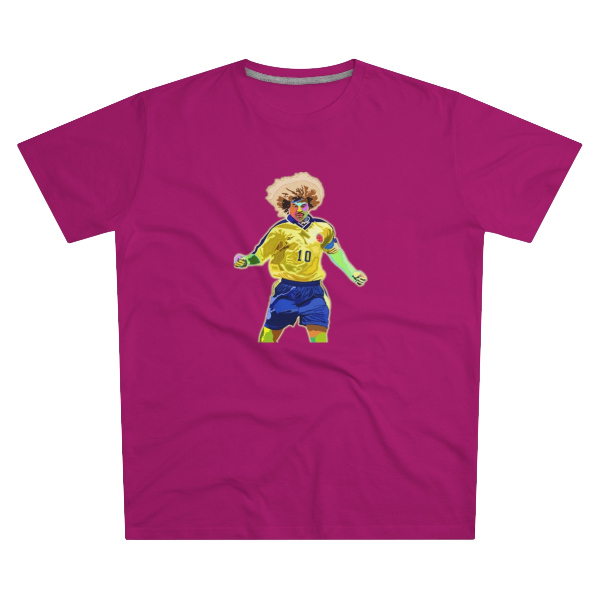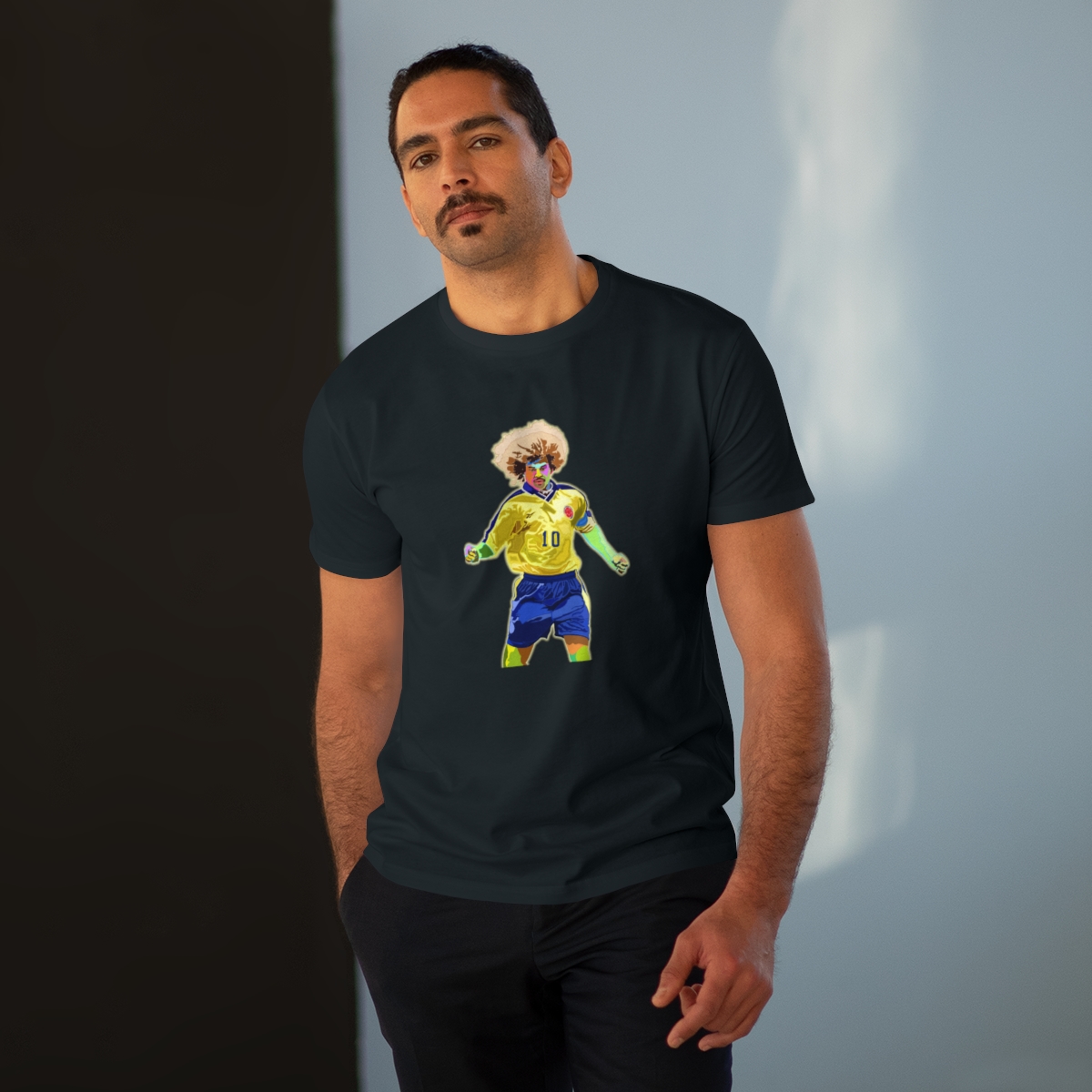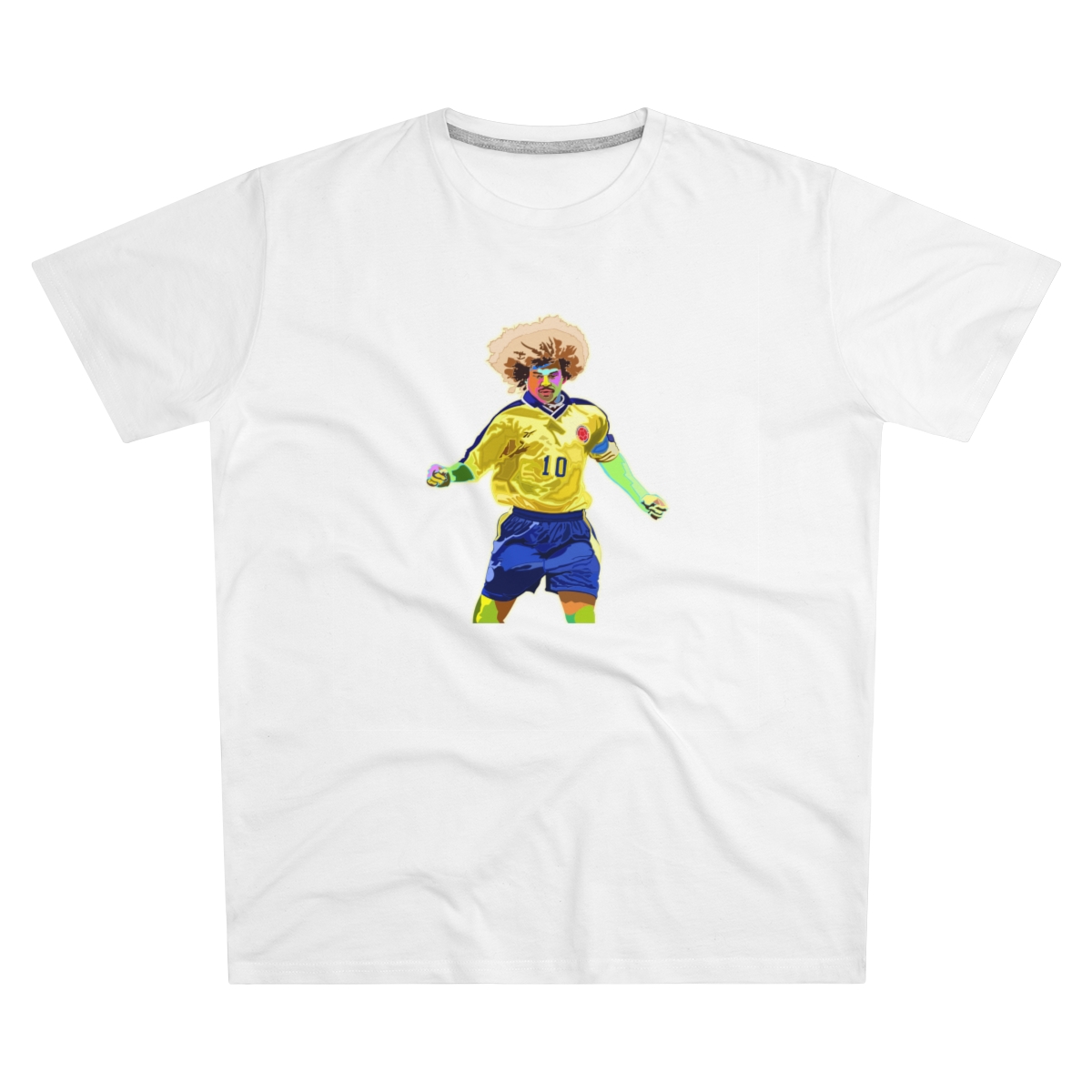 Celebrate the flamboyant career of Carlos Valderrama with our exclusive tribute T-shirt. Meticulously designed, this shirt pays homage to Valderrama’s exceptional talent and impact on the football world. From his mesmerizing skills on the pitch to his iconic hairstyle, every aspect of Valderrama’s brilliance is commemorated in this stylish apparel. Whether you’re recalling his pinpoint passes or honoring his lasting legacy, this T-shirt allows you to carry Valderrama’s influence with you wherever you go. Make a statement and honor one of football’s true icons with this iconic Carlos Valderrama tribute T-shirt.