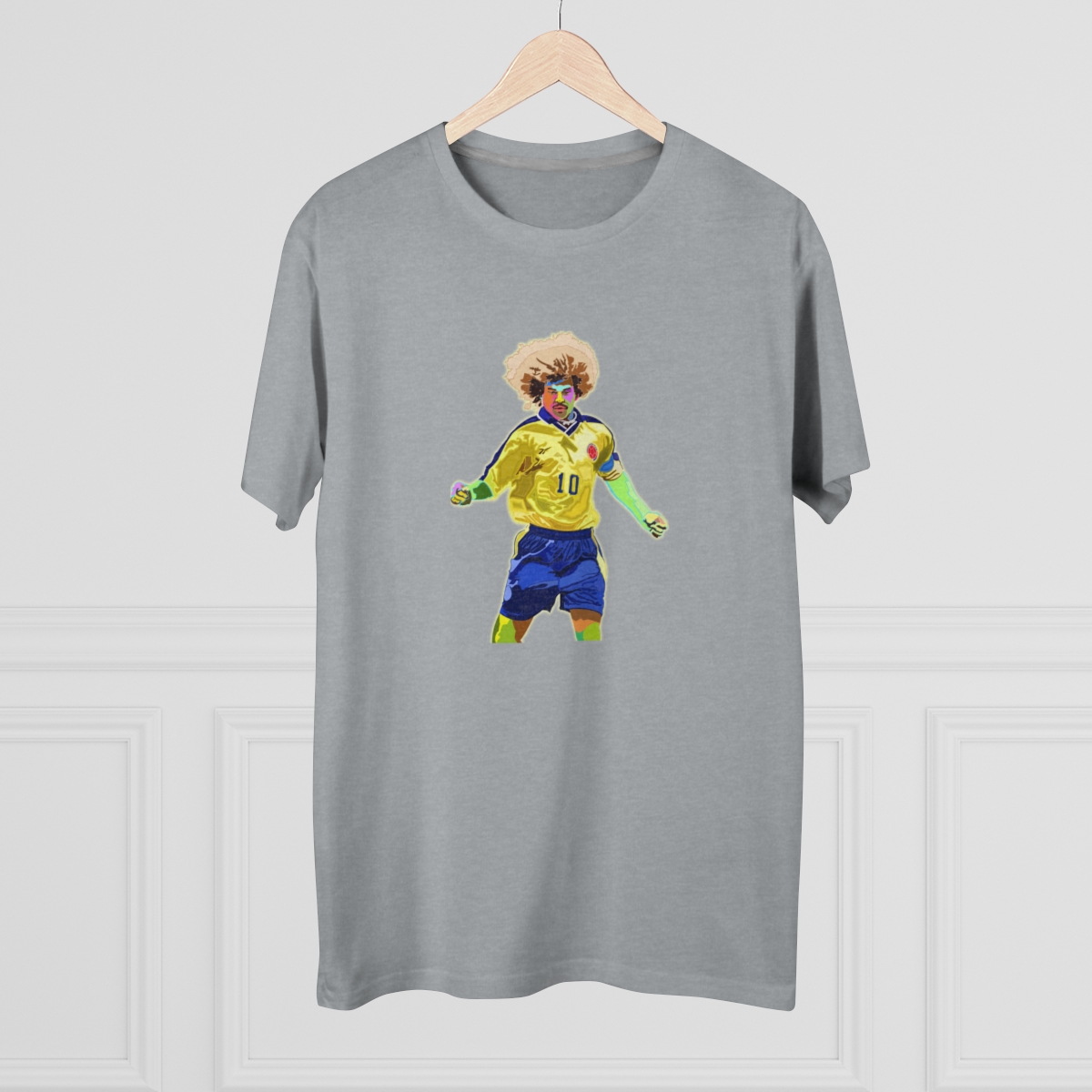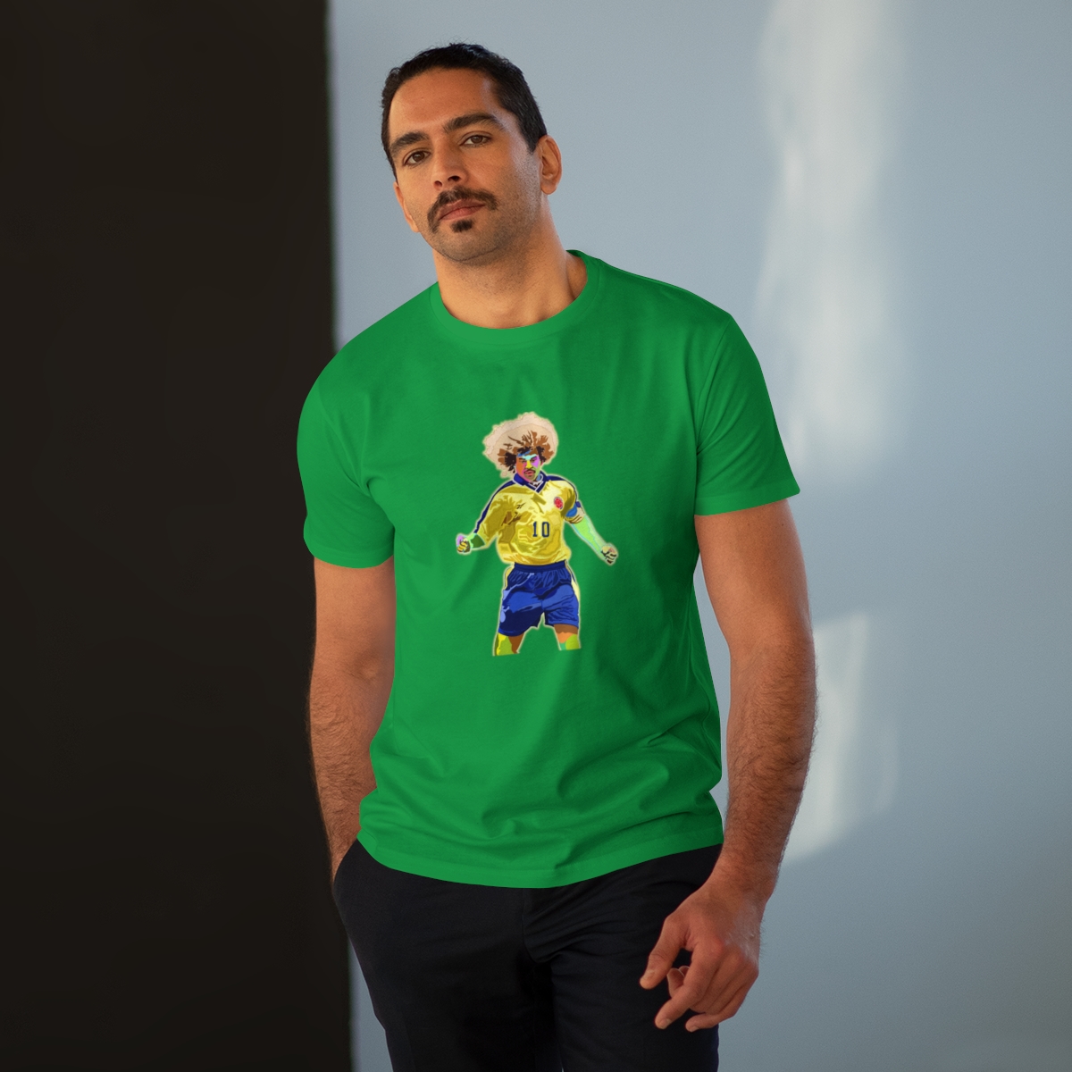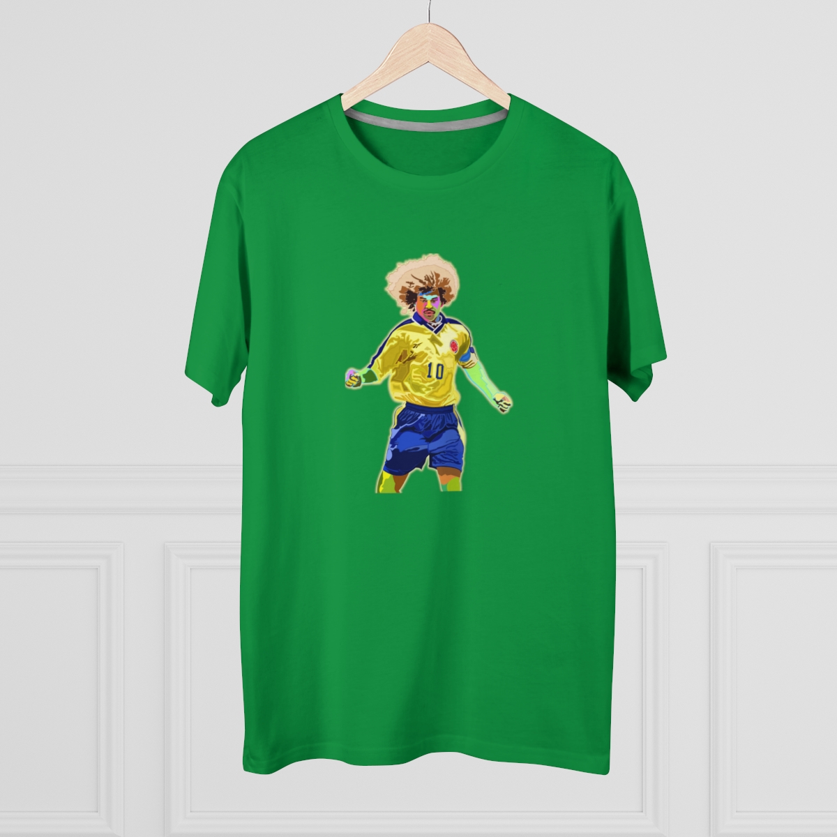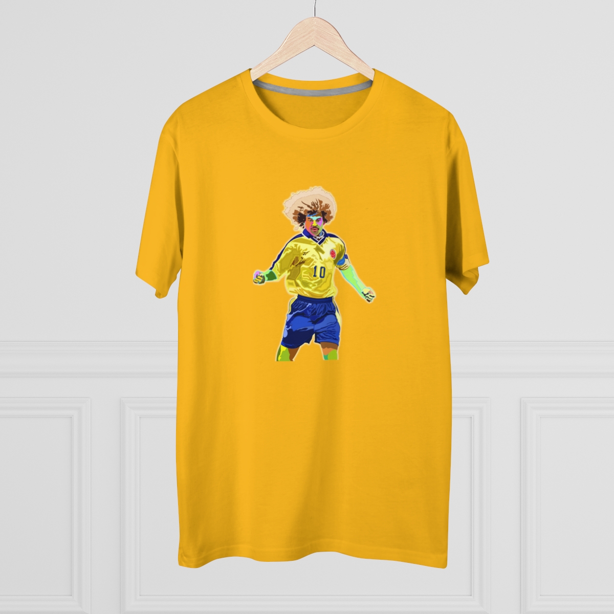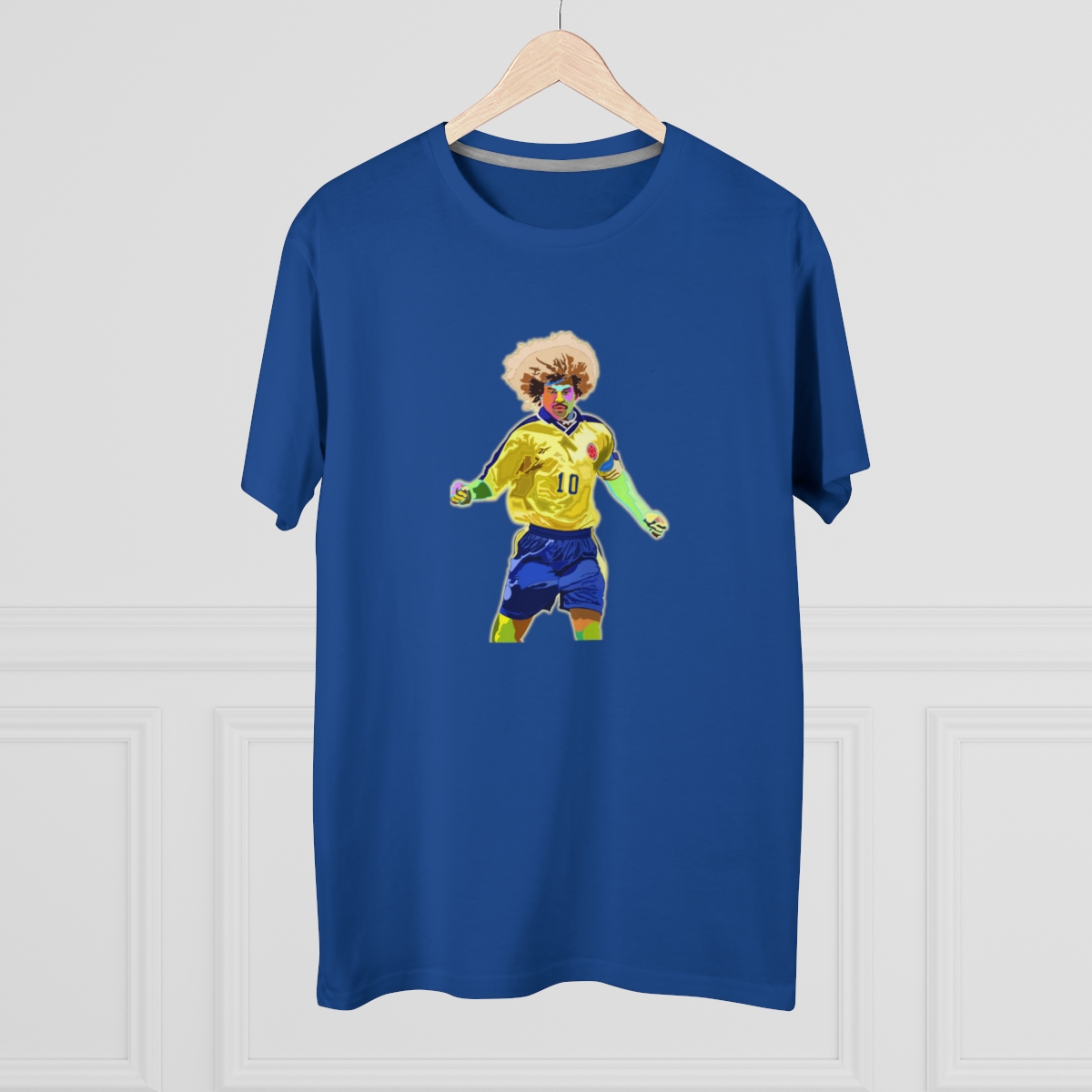Celebrate the flamboyant career of Carlos Valderrama with our exclusive tribute T-shirt. Meticulously designed, this shirt pays homage to Valderrama’s exceptional talent and impact on the football world. From his mesmerizing skills on the pitch to his iconic hairstyle, every aspect of Valderrama’s brilliance is commemorated in this stylish apparel. Whether you’re recalling his pinpoint passes or honoring his lasting legacy, this T-shirt allows you to carry Valderrama’s influence with you wherever you go. Make a statement and honor one of football’s true icons with this iconic Carlos Valderrama tribute T-shirt.