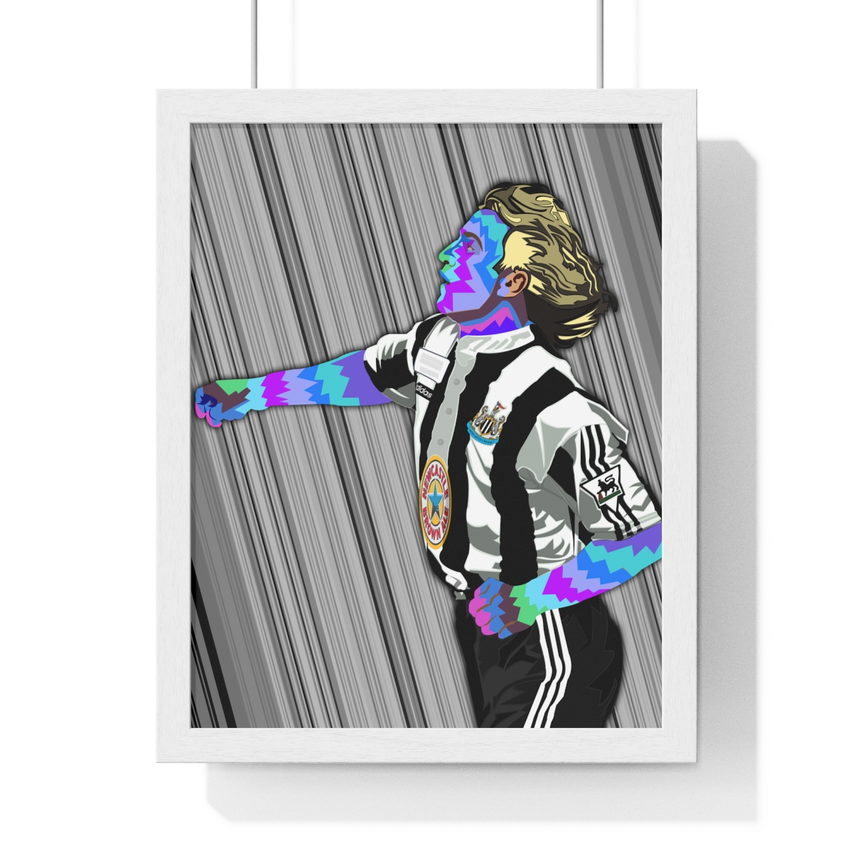 Commemorate the French magician David Ginola with our “David Ginola: The French Magician – Iconic Framed Artwork.” This piece immortalizes Ginola’s dribbling skills, creativity, and impact on the game, showcasing his enduring legacy in French and English football.