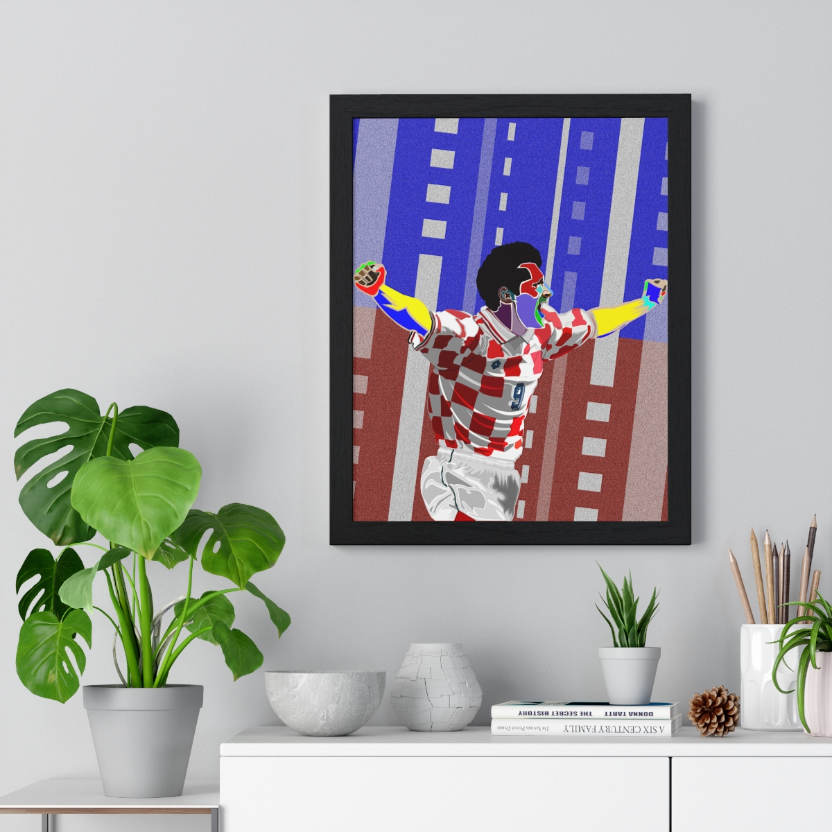 Commemorate the Croatian goal-scoring maestro Davor Suker with our “Davor Suker: Croatian Goal-Scoring Maestro – Iconic Framed Artwork.” This piece immortalizes Suker’s instinct in front of goal, technique, and impact on Croatian football, showcasing his status as a legendary striker.
