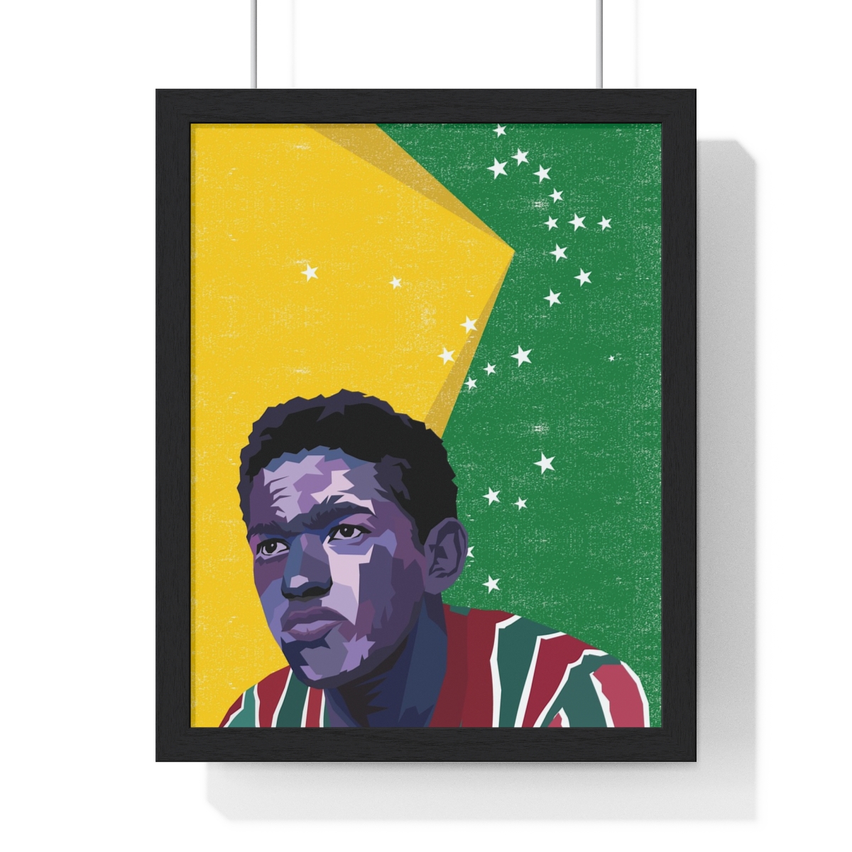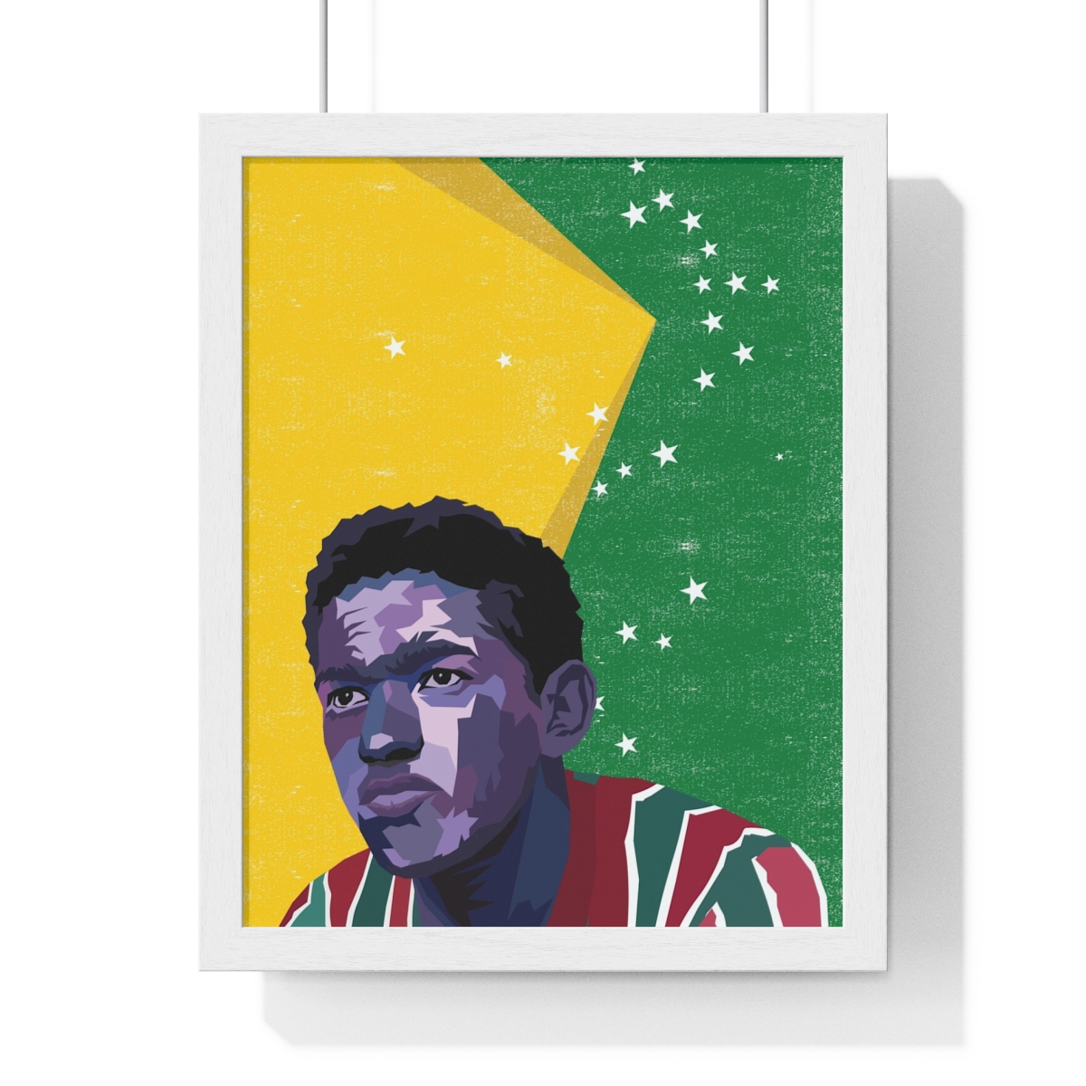 Commemorate the Brazilian football legend Garrincha with our “Garrincha: The Joyous Genius – Iconic Framed Artwork.” This piece immortalizes Garrincha’s dribbling mastery, agility, and impact on the game, showcasing his enduring legacy in Brazilian football history.