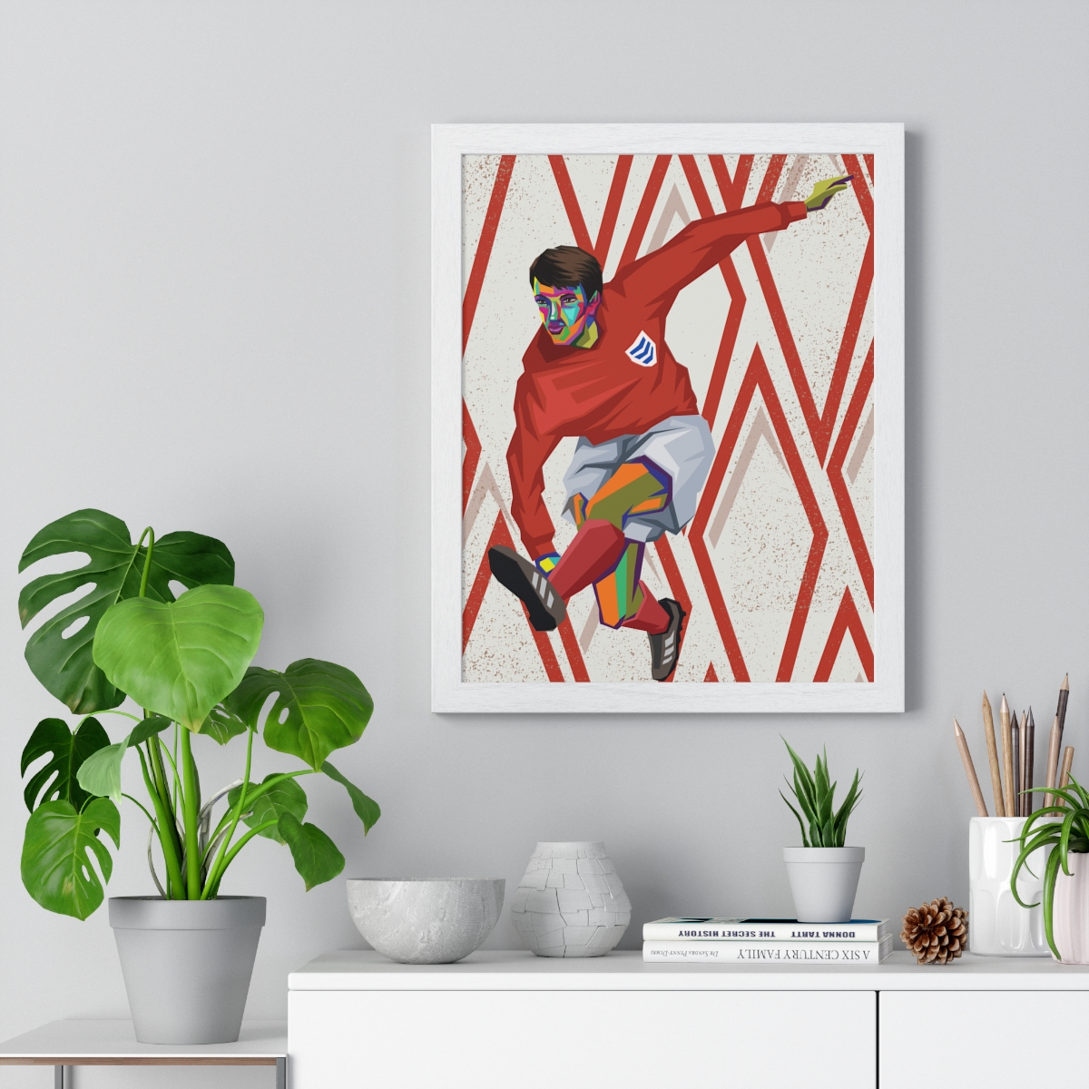 Honor the legendary career of Geoff Hurst with our “Geoff Hurst: World Cup Hero – Iconic Framed Artwork.” This piece commemorates Hurst’s unforgettable performance in the 1966 FIFA World Cup final, showcasing his impact on football history.