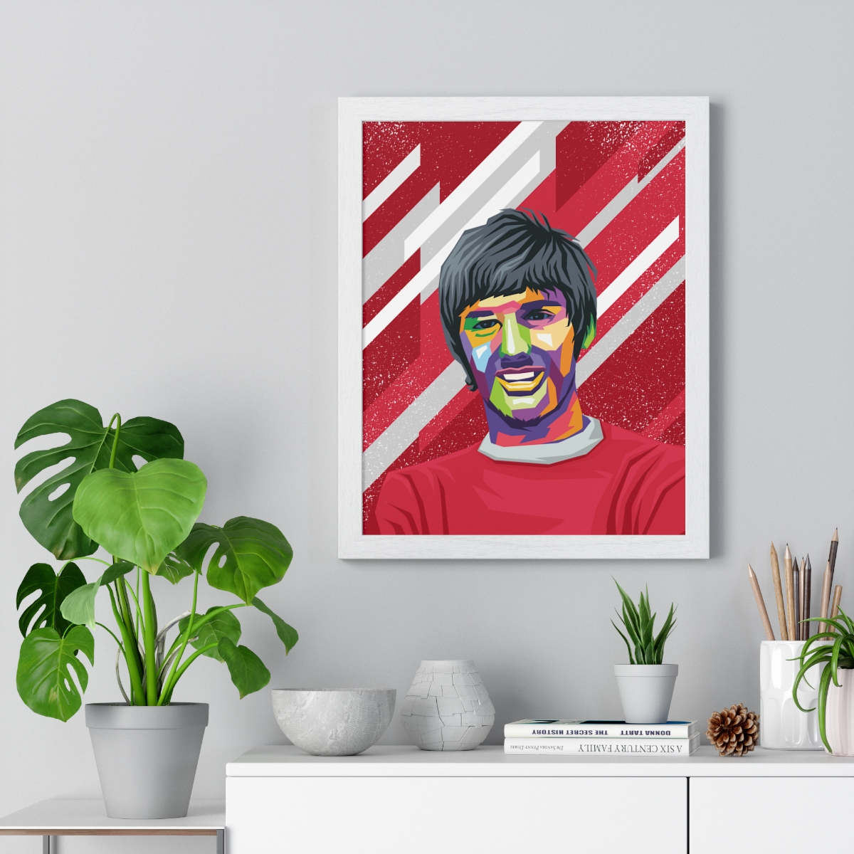 Experience the magic of Best’s era-defining moments as you admire this framed artwork. Whether you’re a devoted fan or simply appreciate football greatness, this piece is sure to evoke nostalgia and admiration for one of the game’s most iconic figures.