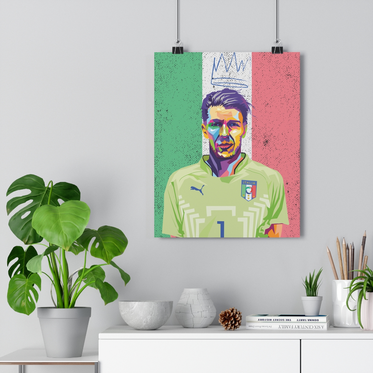 Delve into the legendary career of Gianluigi Buffon with our iconic poster. This artwork pays homage to Buffon’s unparalleled goalkeeping skills, commanding presence, and enduring legacy on the pitch. As a stalwart guardian of the goal for both club and country, Buffon epitomizes excellence between the posts. Hang this poster proudly in your space to be inspired by Buffon’s resilience, leadership, and unwavering commitment to greatness with every glance. Perfect for fans of goalkeeping mastery and admirers of football greatness, this poster is a timeless tribute to one of the sport’s most iconic and beloved figures.