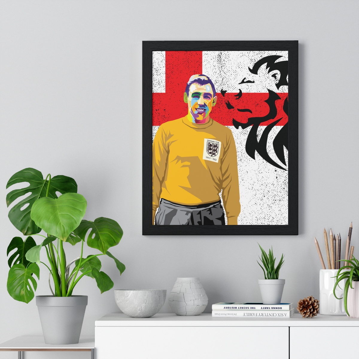Honor the remarkable career of Gordon Banks with our “Gordon Banks: Goalkeeping Great – Iconic Framed Artwork.” This piece commemorates Banks’s agility, reflexes, and iconic save against Pelé, showcasing his enduring legacy as one of football’s finest goalkeepers.