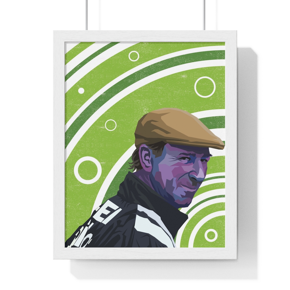 Celebrate the defensive legend Jack Charlton with our exclusive framed artwork, immortalizing his strength and leadership on the field.