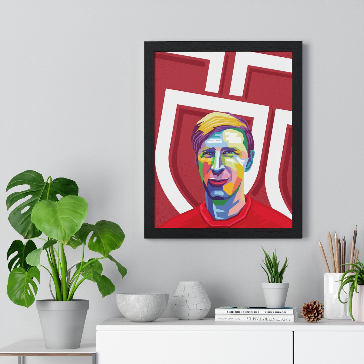Honor the legendary career of Jack Charlton with our “Jack Charlton: Defensive Giant – Iconic Framed Artwork.” This piece commemorates Charlton’s commanding presence, impeccable defending, and lasting legacy in football history.