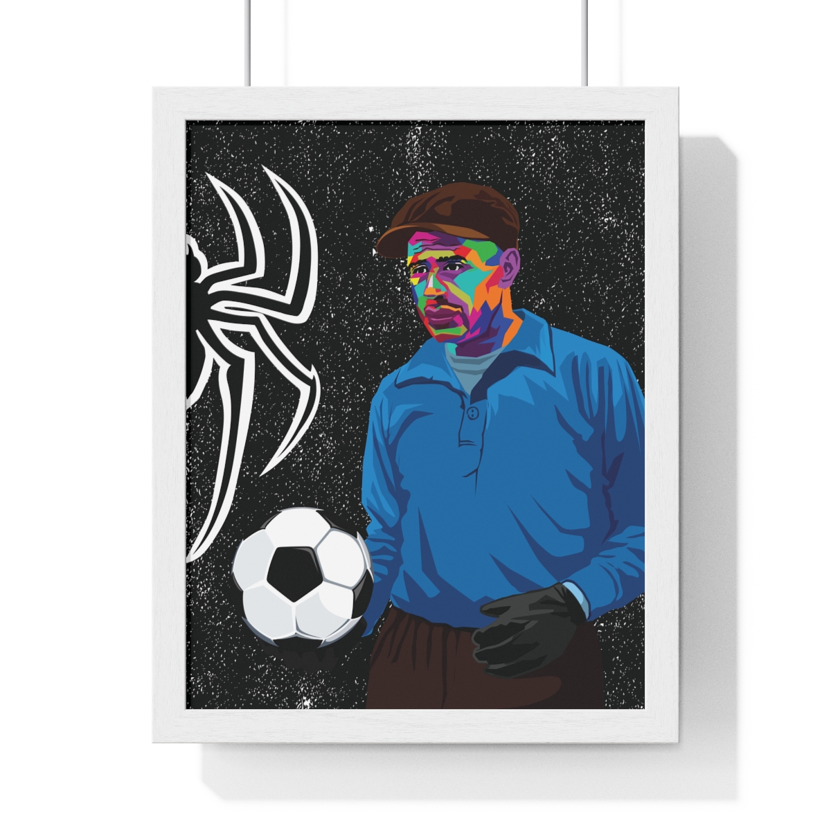 Commemorate the legendary goalkeeper Lev Yashin with our “Lev Yashin: The Black Spider – Iconic Framed Artwork.” This piece immortalizes Yashin’s shot-stopping ability, leadership, and impact on the game, showcasing his enduring legacy in Russian and world football.