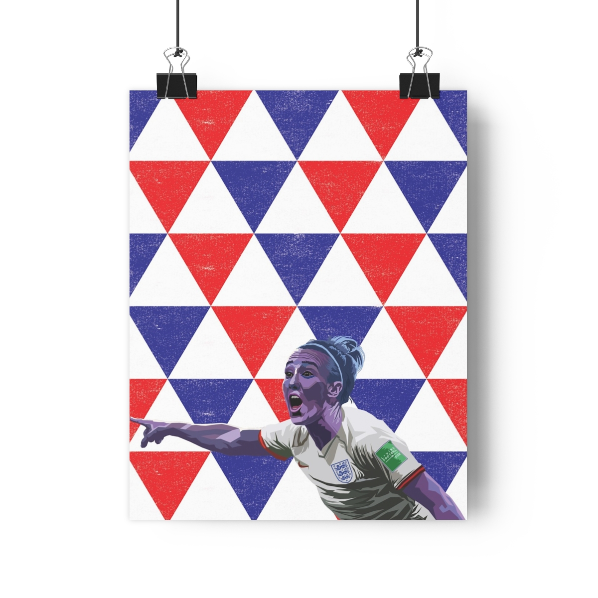 Dive into the world of women’s football with our iconic poster featuring Lucy Bronze. This artwork pays homage to Bronze’s exceptional talent and unwavering dedication on the pitch. From her commanding presence in defense to her dynamic runs down the flank, every detail celebrates Bronze’s prowess and versatility. Hang this poster proudly in your space to be inspired by Bronze’s determination and skill with every glance. Perfect for fans and admirers of women’s football, this poster is a timeless tribute to one of the game’s most outstanding defenders.