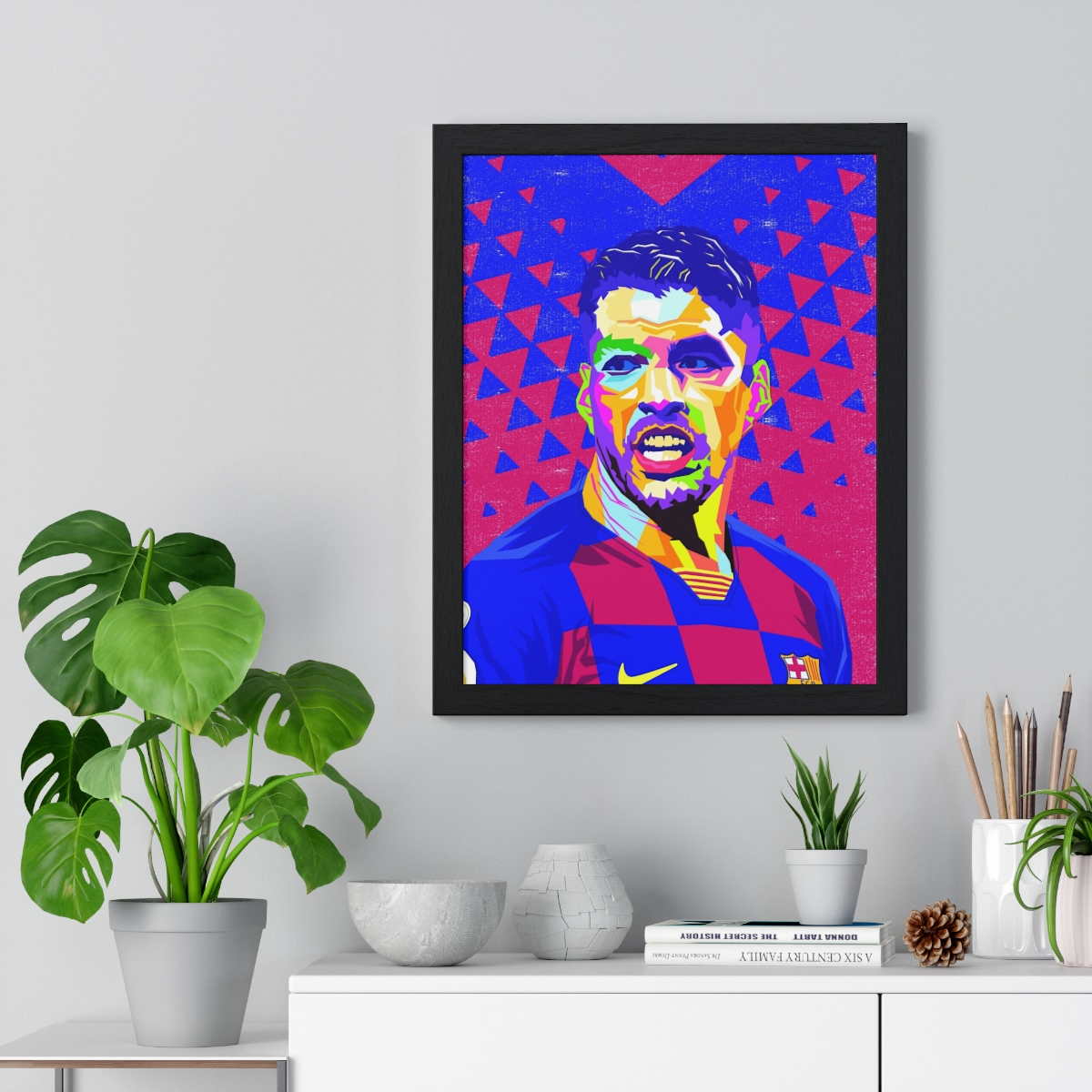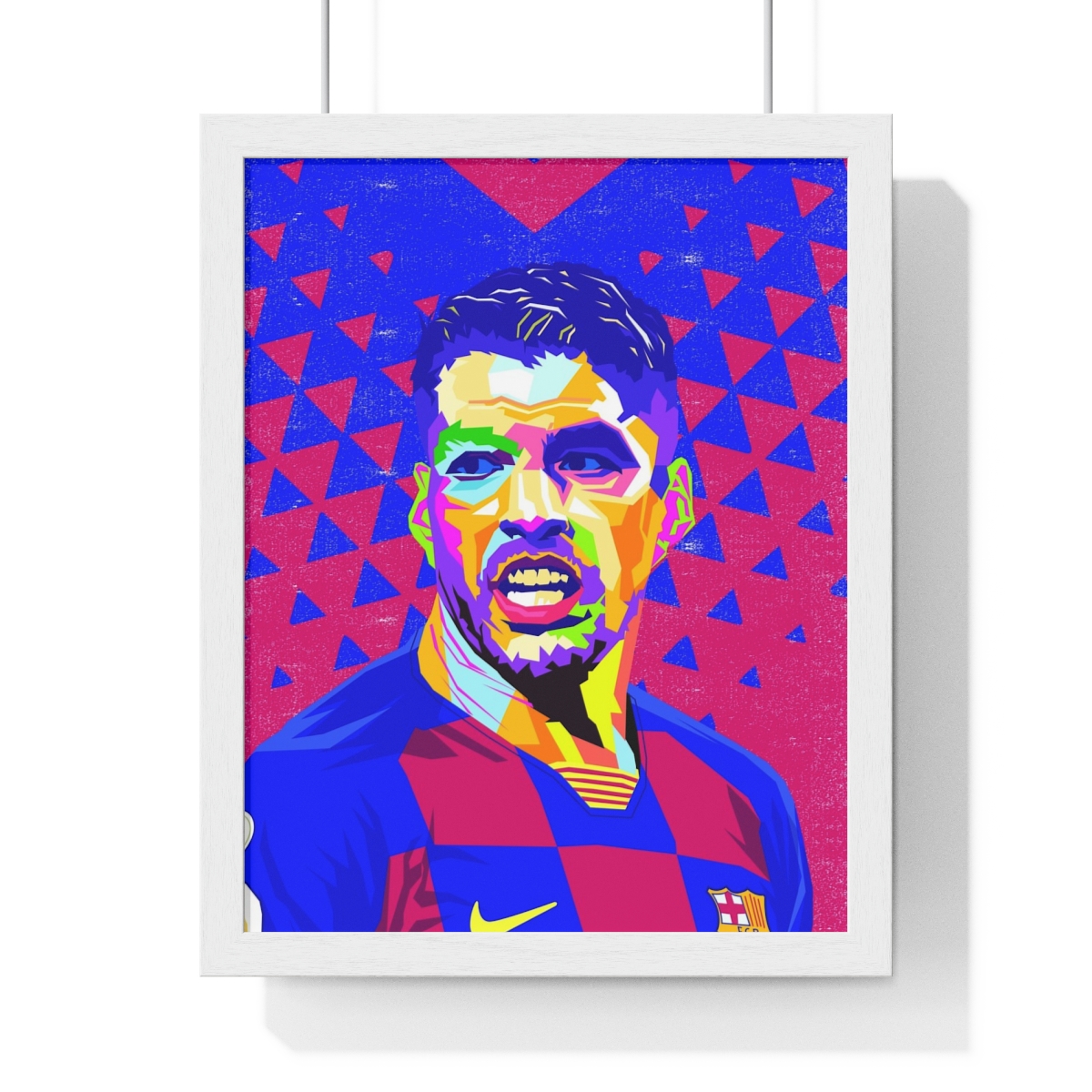 Pay homage to the Uruguayan goal machine Luis Suarez with our “Luis Suarez: The Uruguayan Goal Machine – Iconic Framed Artwork.” This piece celebrates Suarez’s tenacity, technique, and prolific goal-scoring record, showcasing his status as one of football’s most feared strikers.