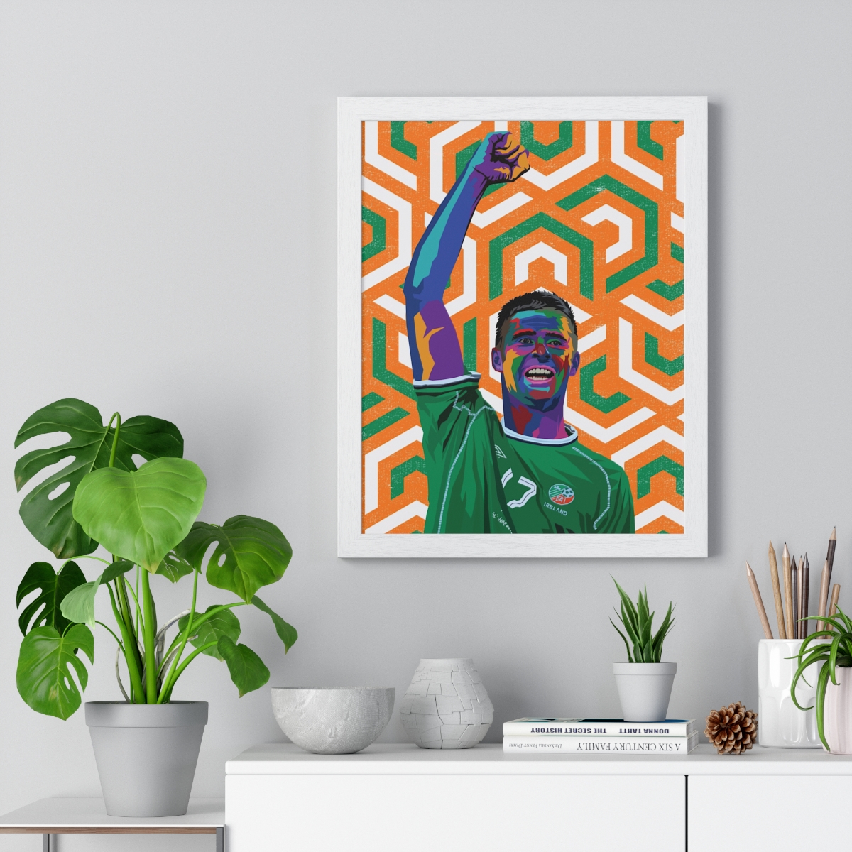 Honor the footballing icon Niall Quinn with our “Niall Quinn: The Irish Football Icon – Iconic Framed Artwork.” This piece celebrates Quinn’s goal-scoring ability, aerial prowess, and impact on Irish football, showcasing his enduring legacy.