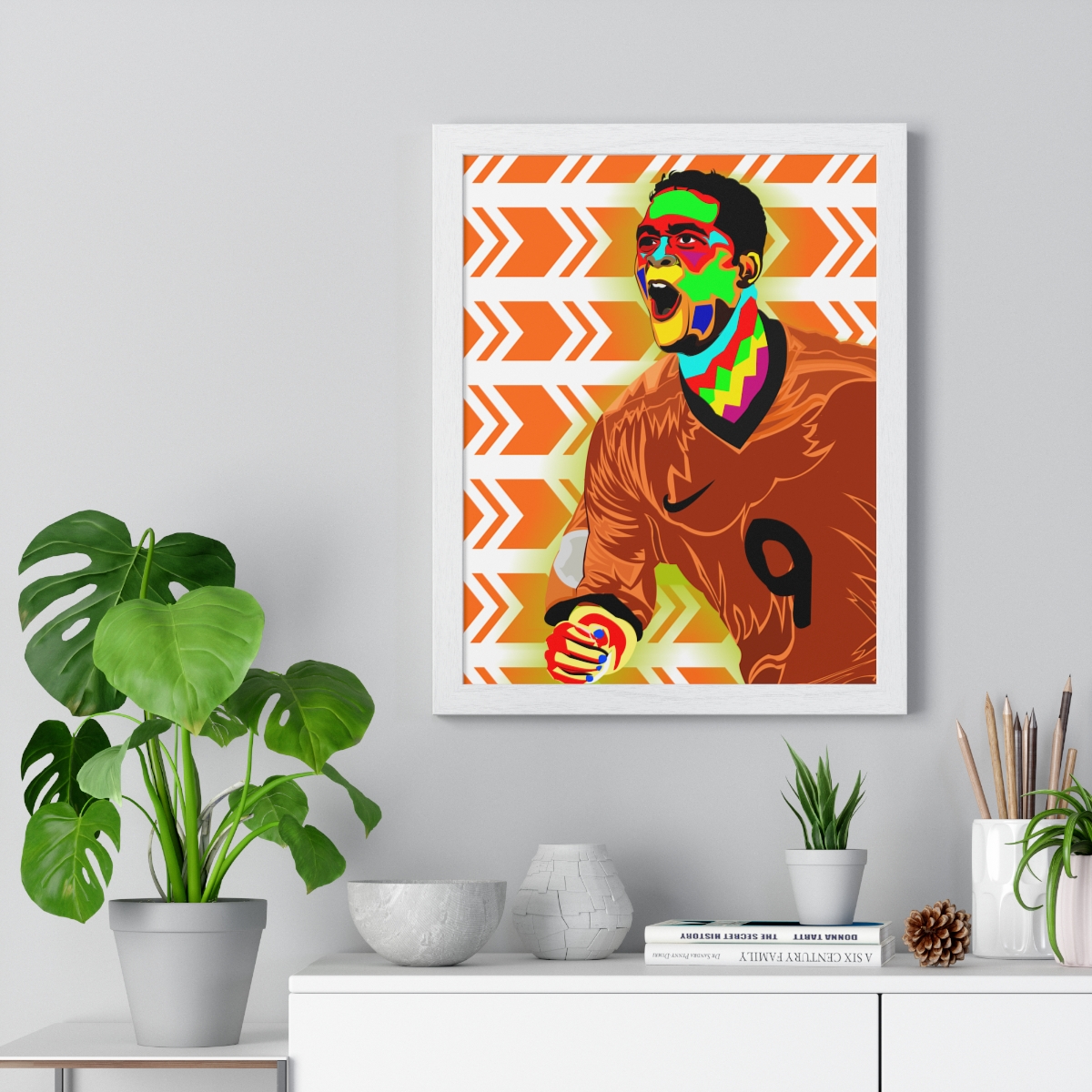 Honor the remarkable career of Patrick Kluivert with our “Patrick Kluivert: Goal-Scoring Maestro – Iconic Framed Artwork.” This piece commemorates Kluivert’s ability to find the back of the net and his enduring influence on the game, showcasing his skill and dedication.
