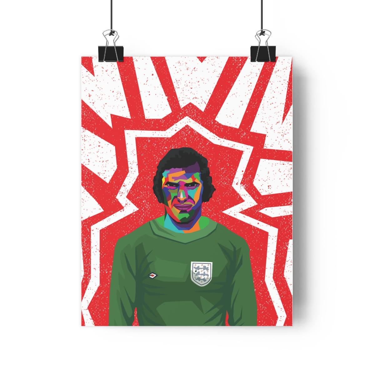 Delve into the remarkable career of Peter Shilton with our iconic poster. This artwork pays tribute to Shilton’s extraordinary goalkeeping skills, unmatched reflexes, and enduring legacy on the pitch. Known for his safe hands and unparalleled consistency, Shilton remains one of football’s most revered goalkeepers. Hang this poster proudly in your space to be inspired by Shilton’s dedication and mastery with every glance. Perfect for fans of goalkeeping excellence and admirers of football greatness, this poster is a timeless celebration of Peter Shilton’s legendary career.