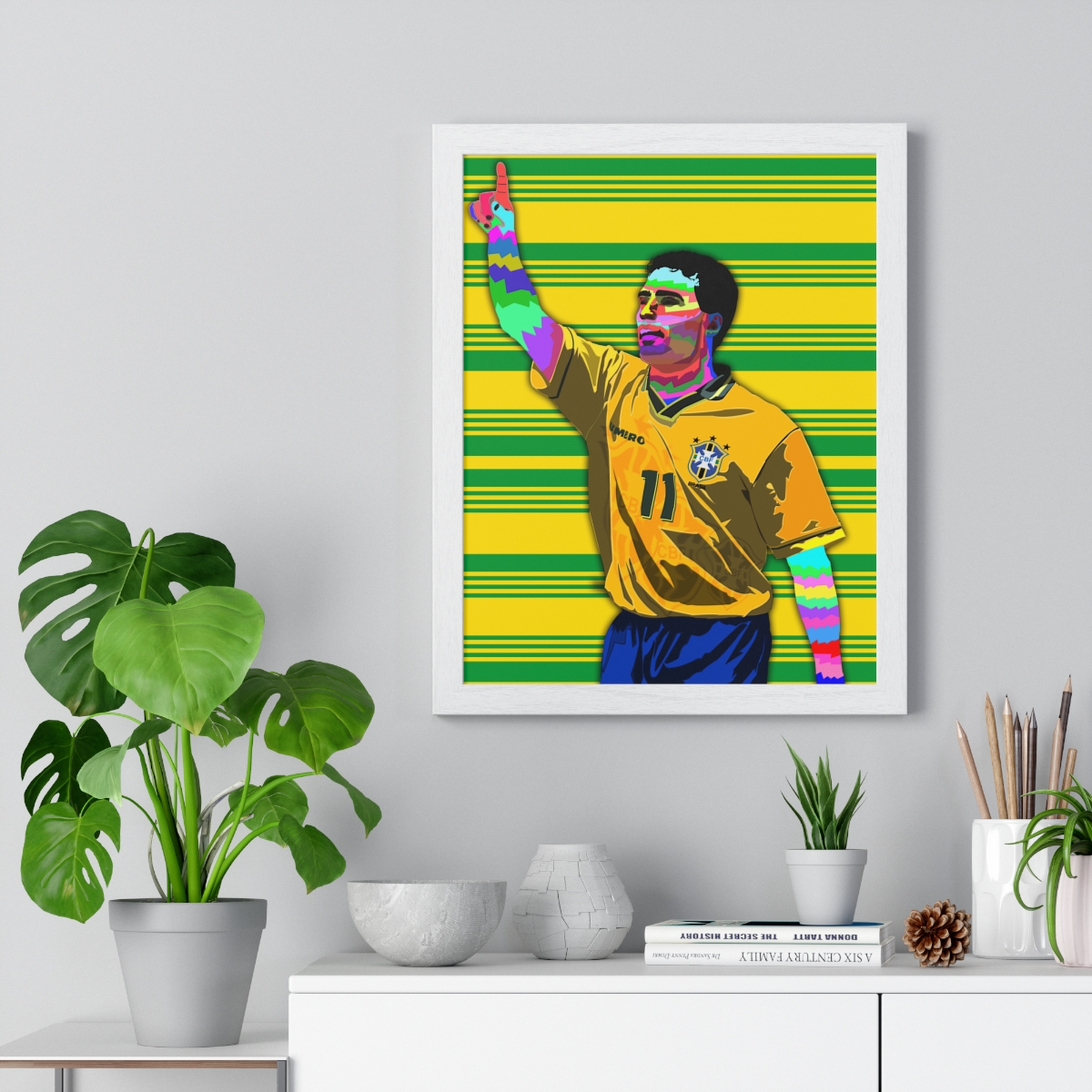 Celebrate the Brazilian football legend Romario with our “Romario: Brazilian Football Legend – Iconic Framed Artwork.” This piece honors Romario’s dribbling ability, clinical finishing, and World Cup triumphs, showcasing his enduring legacy in Brazilian football history.