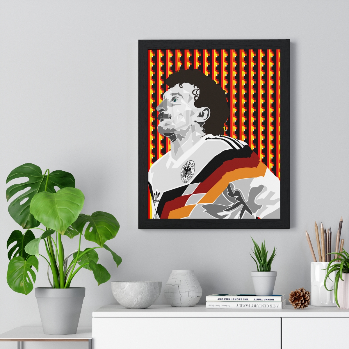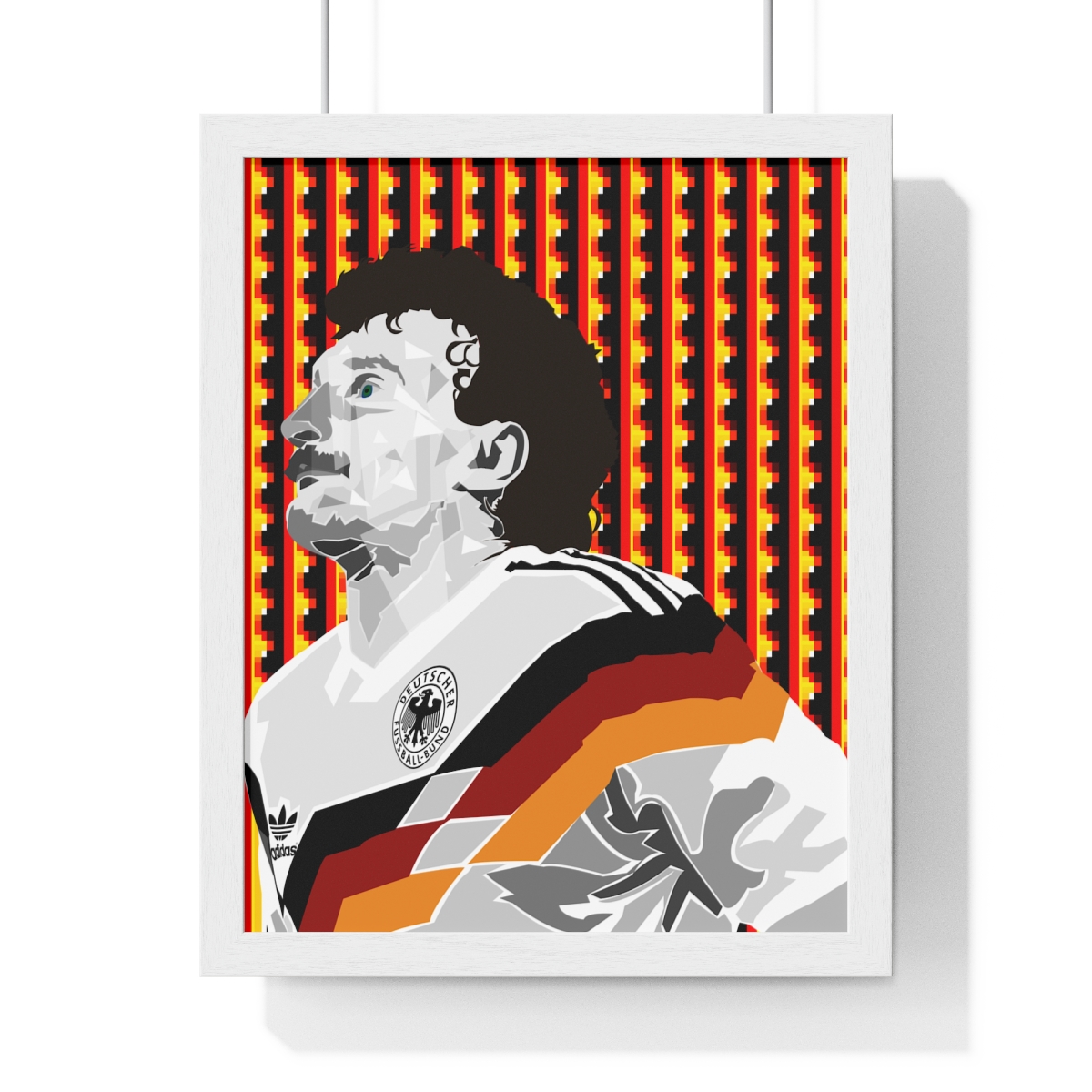 Honor the footballing legend Rudi Völler with our “Rudi Völler: The German Football Icon – Iconic Framed Artwork.” This piece celebrates Völler’s goal-scoring ability, work ethic, and success, showcasing his enduring legacy in German football.