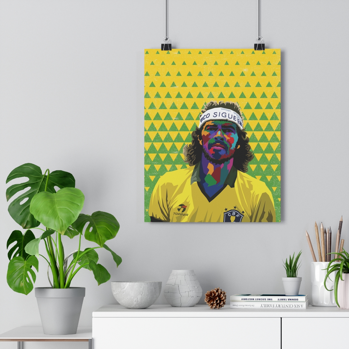 Immerse yourself in the brilliance of Sócrates with our iconic poster. This artwork pays homage to Sócrates’ unique style, intelligence, and profound impact on the beautiful game. As both a skilled midfielder and a medical doctor, Sócrates embodied intellect and athleticism on and off the pitch. Hang this poster proudly in your space to be inspired by Sócrates’ creativity, vision, and enduring legacy with every glance. Perfect for fans of football philosophy and admirers of individual greatness, this poster is a timeless tribute to one of the sport’s most iconic and cerebral figures